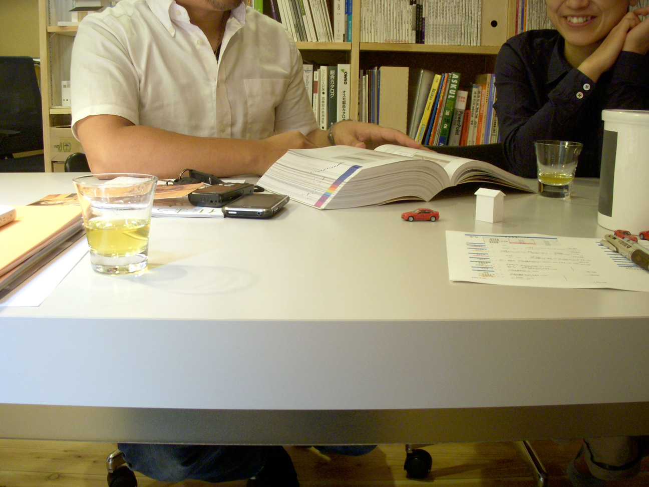真夏の一歩手前、ぼちぼち梅雨も明けようかという日頃。 ふらーっと友人で、写真家の佐藤学ぶ君が事務所に来訪。その横はアシスタントの島ちゃんです。 車はブルーのPOLO。かわいいですね。 竣工写真を撮ってくれたり、イベントに誘ってくれたりと楽しい事でお世話になっている彼らです。 忙しいところ本町まで送ってくれてありがとう!!