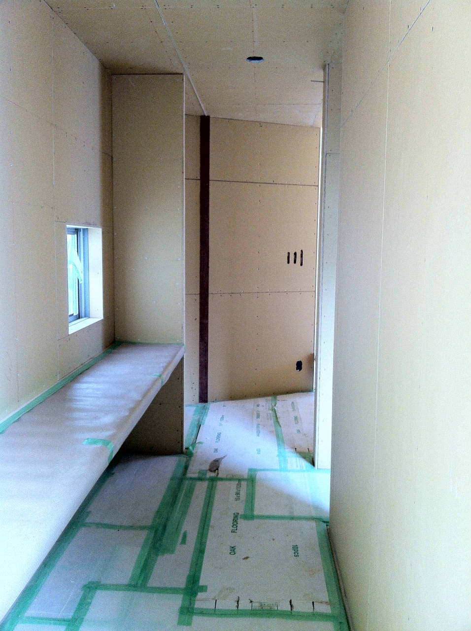 名古屋市の住宅もいよいよ外壁が仕上がってきました。今回は素材の違う3種類の仕上材を用います。来月の竣工に向けてもう一頑張り。 中々言葉では伝えきれないので左官職人さんと定規の使い方をパターンの調整 これくらいのラフさで スリットに雨樋が入っています 中庭を見下ろす 廊下のスタディスペース