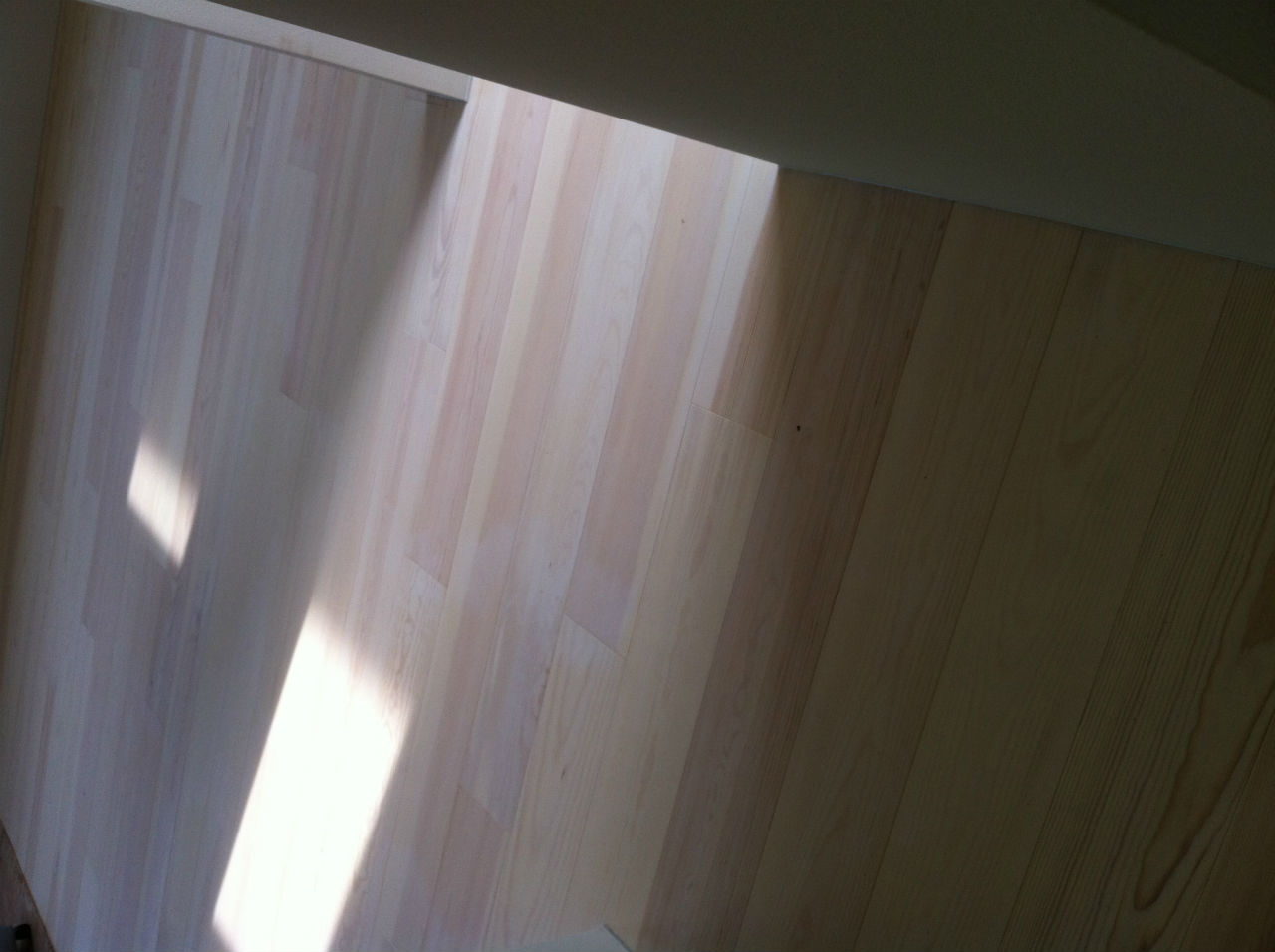 愛媛県西条市の住宅もいよいよ仕上げ工事が完了に近づき照明器具の取り付けが完了しました。現地にてお施主さん立会いの下、外構の打合せを行いました。 シンプルなLDKにタタミコーナーがあります。キッチンはトーヨーキッチンで奥様が選ばれました。カウンタ下にはガラリを付けて間接的に自然光と通風を取り入れます。 A・B棟の間にある中庭の水盤です。面するA棟の床下に2匹の専用Cat Houseがあります。猫ちゃんはA棟の中を自由に行き来できる予定です。 床板はパインに水性の匂いのほとんどない浸透系保護塗装しています。手触りが良く、やわらかいので小さいお子さんには最適です。