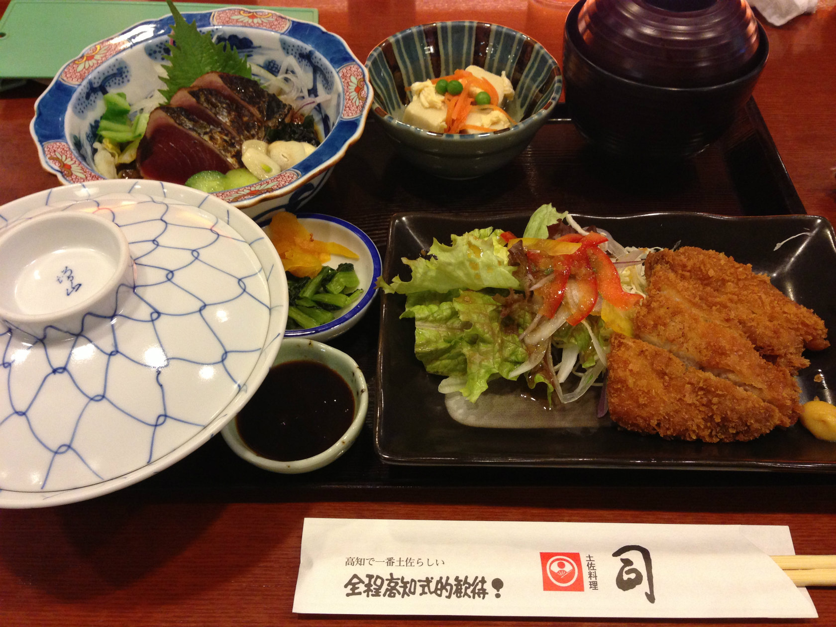 高知の打合せに行く時は車か列車で行っていたのですが先日初めて飛行機を利用しました。初めての龍馬空港です。 初めてのプロペラ機。機体が近いです。 曇天でしたが雲海に乱反射する陽光が美しかったです。 定番。 最後はかつおのタタキ定食で〆ました。季節でなくても美味しいです。
