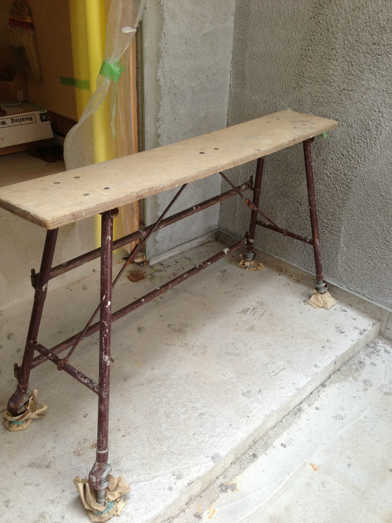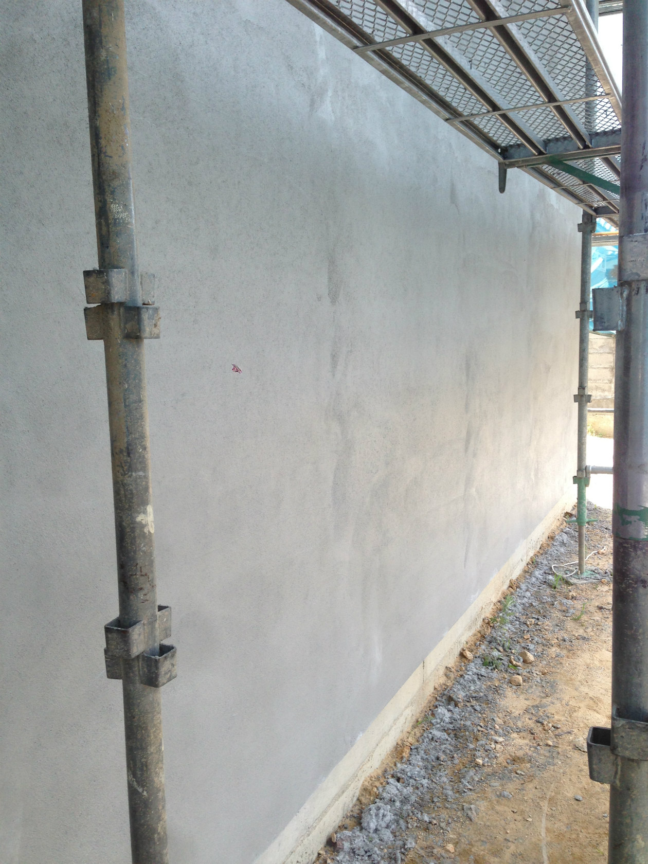 安来の家の現場に行きました。各部の仕上げが大詰めで打合せにも熱が入ります。打合せに行っても楽しい現場です。 前を流れる小川には白鳥のカップルがたたずんでいます。 外壁の左官仕上がりの確認しました。施主と職人さんの調整で自然な風合いのコテ押えが何ともよいです。 テラスの窓越しの壁もモルタルで仕上がりカンバスのようです。 現場の仮設台ですが事務所で飾り棚に使いたいくらいハンドクラフトな感じ。