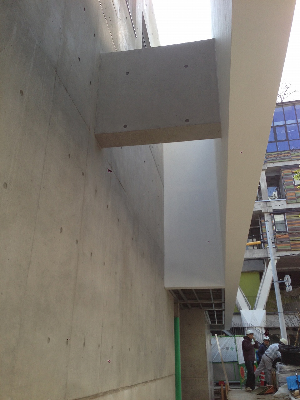 周囲はオフィスが密集しているためプライバシー&採光にコンクリートの壁を帯状に2階の周りに回しています。